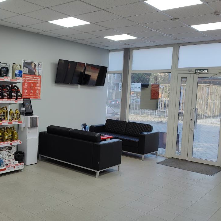 Приятно удивили работой: колеса поменяли оперативно, старые аккуратно упаковали и сложили в багажник. Видно, что мастера работают профессионально. Есть удобная зона ожидания с экраном - можно наблюдать за процессом.