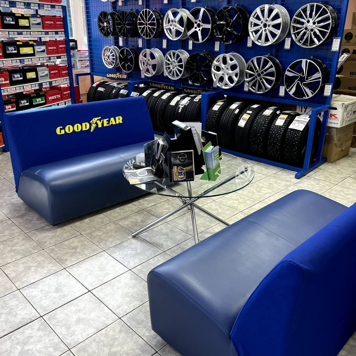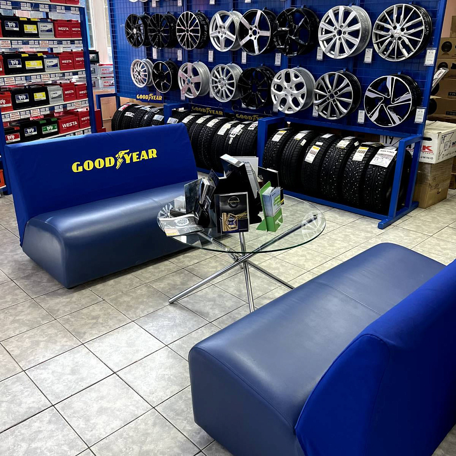 Приятно удивили работой: колеса поменяли оперативно, старые аккуратно упаковали и сложили в багажник. Видно, что мастера работают профессионально. Есть удобная зона ожидания с экраном - можно наблюдать за процессом.
