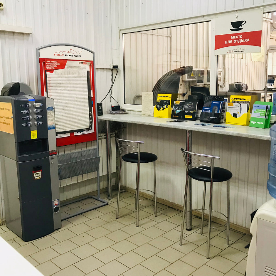 Приятно удивили работой: колеса поменяли оперативно, старые аккуратно упаковали и сложили в багажник. Видно, что мастера работают профессионально. Есть удобная зона ожидания с экраном - можно наблюдать за процессом.