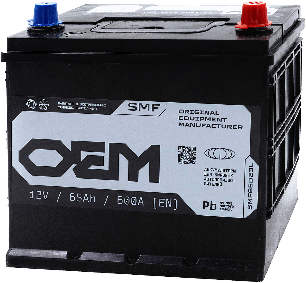 Аналоги аккумулятора OEM SMF85D23L 65 Ач от 600 А обратная полярность азиатский тип корпуса