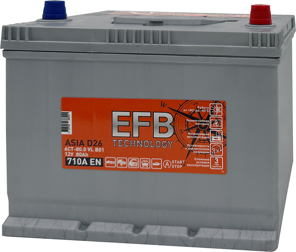Аккумулятор TITAN Asia EFB 80 Ач 710 А обратная полярность