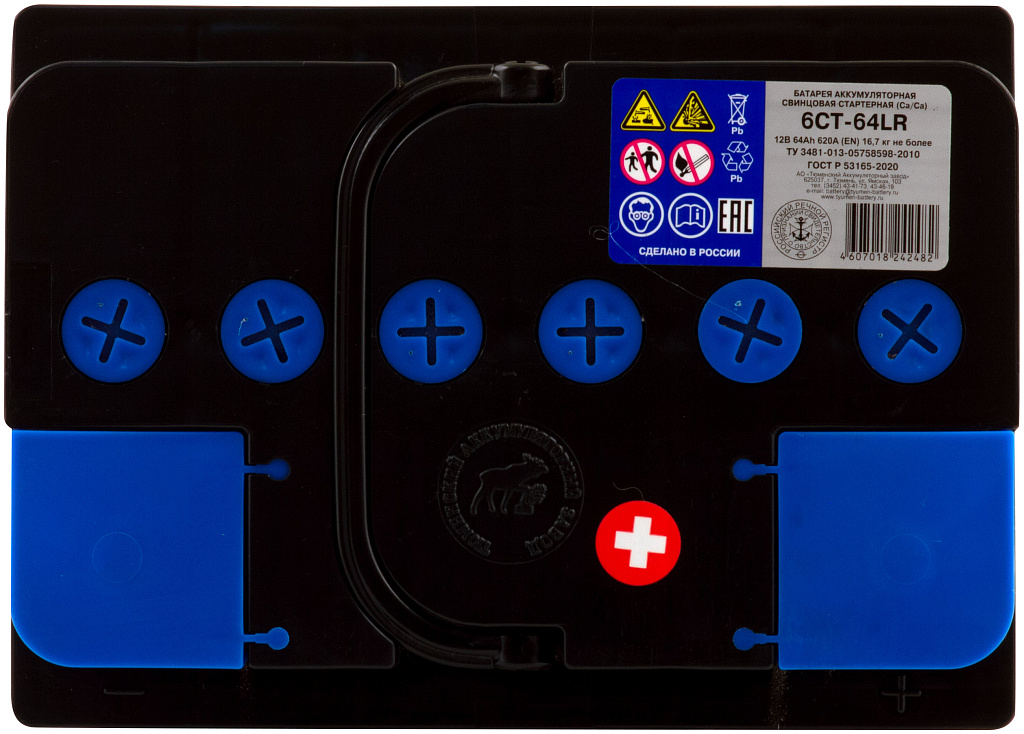 Аккумулятор ТЮМЕНСКИЕ АККУМУЛЯТОРЫ ПРЕМИУМ 64 Ач 620 А обратная полярность
