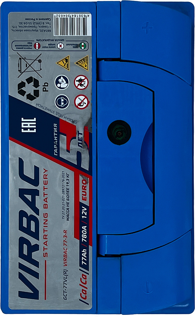 Аналоги аккумулятора VIRBAC 77 Ач от 780 А обратная полярность европейский тип корпуса