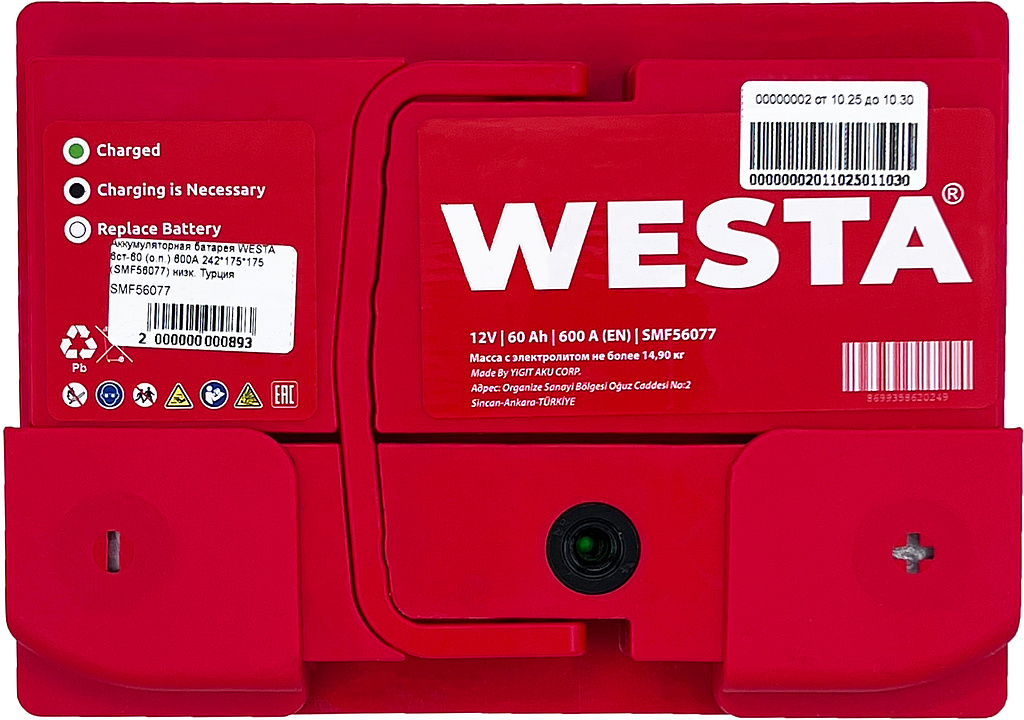 Аналоги аккумулятора WESTA SMF56077 60 Ач от 600 А обратная полярность низкий тип корпуса