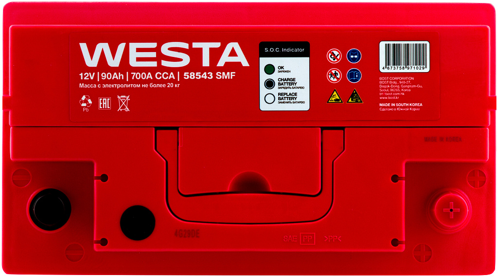 Аккумуляторы WESTA Korea SMF производятся на заводе BOST CORPORATION в Южной Корее с использованием новейших технологий и материалов премиум-класса. Эти батареи предназначены для большинства современных бензиновых и дизельных легковых автомобилей. Благодаря своей конструкции и технологии изготовления они обеспечивают надежное питание всех современных бортовых электроприборов.