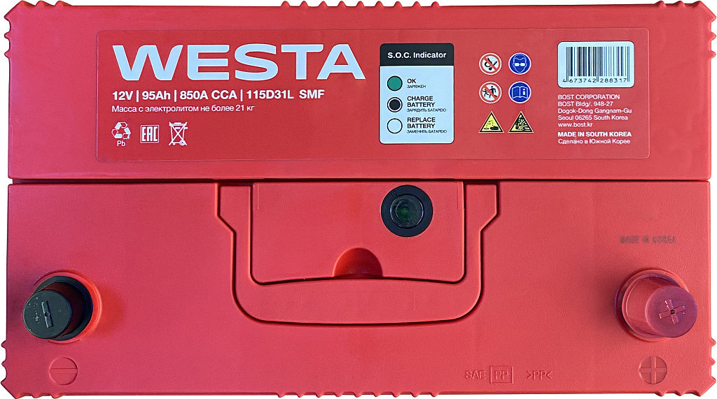 Аккумуляторы WESTA Korea SMF производятся на заводе BOST CORPORATION в Южной Корее с использованием новейших технологий и материалов премиум-класса. Эти батареи предназначены для большинства современных бензиновых и дизельных легковых автомобилей. Благодаря своей конструкции и технологии изготовления они обеспечивают надежное питание всех современных бортовых электроприборов.