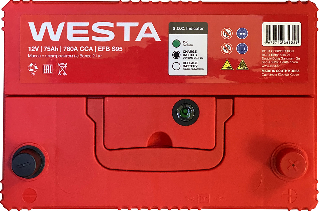 Аккумулятор WESTA Korea (EFB S95) 75 Ач 780 А обратная полярность