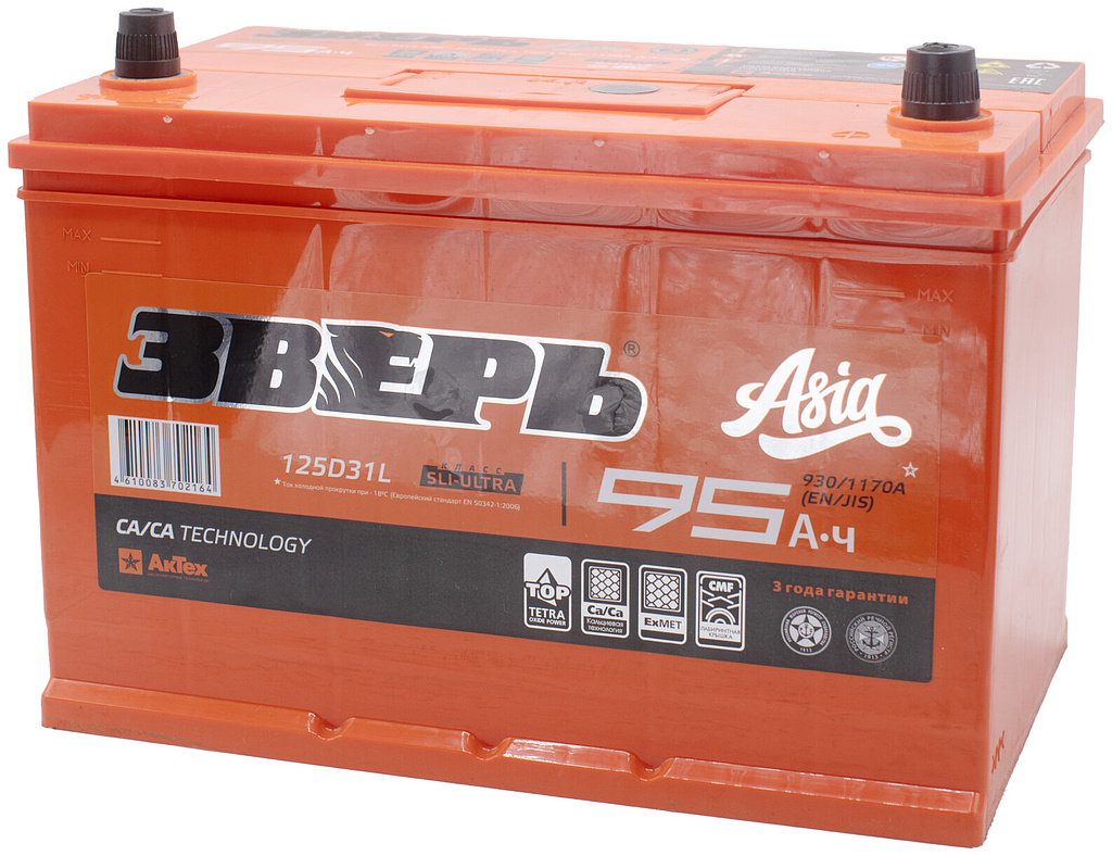 Аккумулятор ЗВЕРЬ Asia 95 Ач 930 А обратная полярность